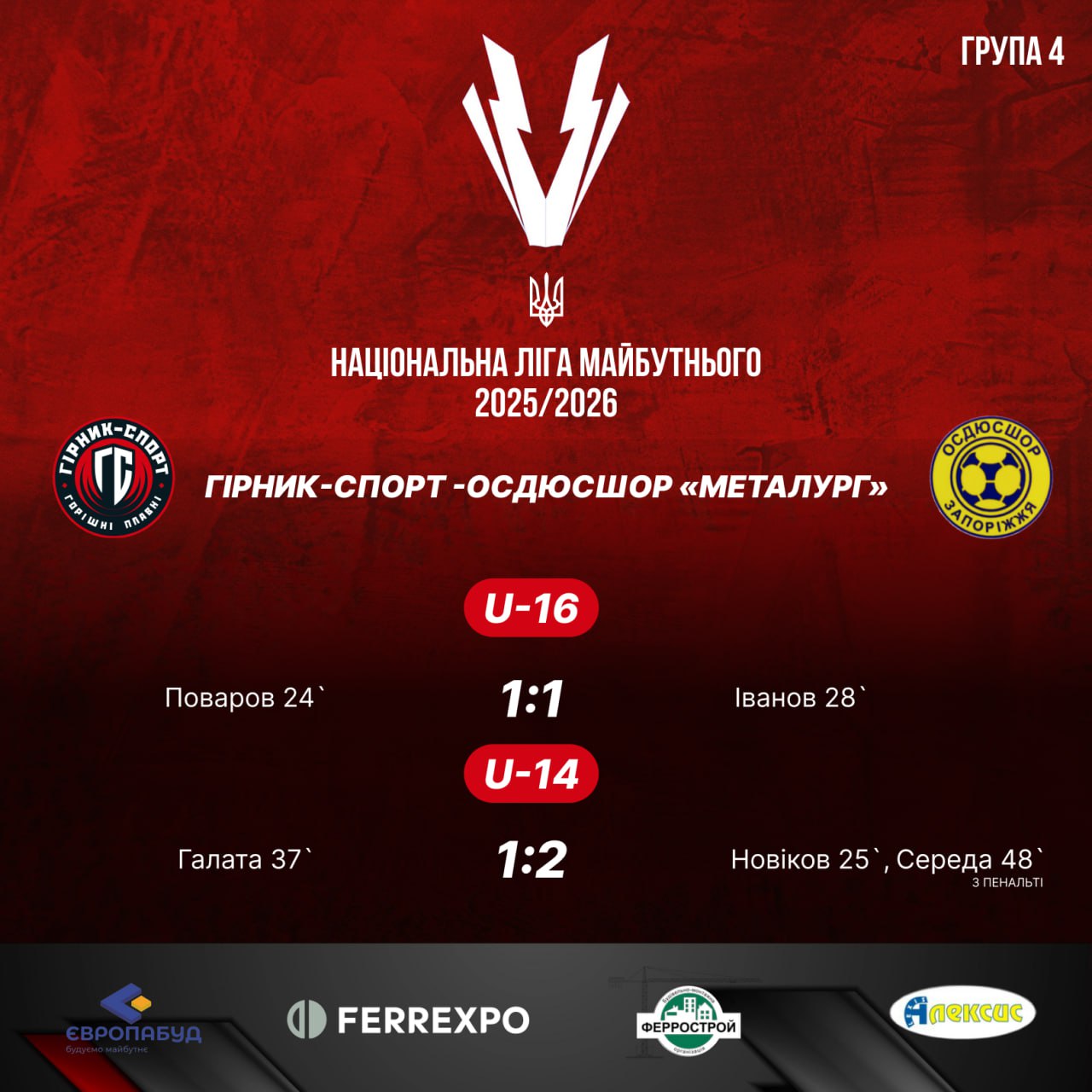 Команди ДЮФК «Гірник-Спорт» U-14 та U-16 провели матчі 4-го туру, в яких приймали гостей із Запоріжжя з команди «ОСДЮСШОР Металург».