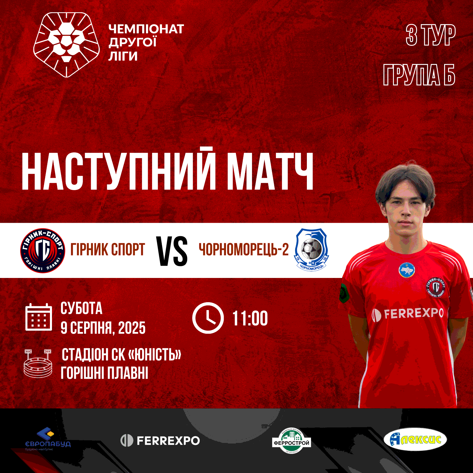 У суботу, 9 серпня, у Горішніх Плавнях відбудеться матч третього туру Другої ліги. На стадіоні спорткомплексу «Юність» «Гірник-Спорт» прийматиме одеський «Чорноморець-2». Початок матчу - об 11:00.