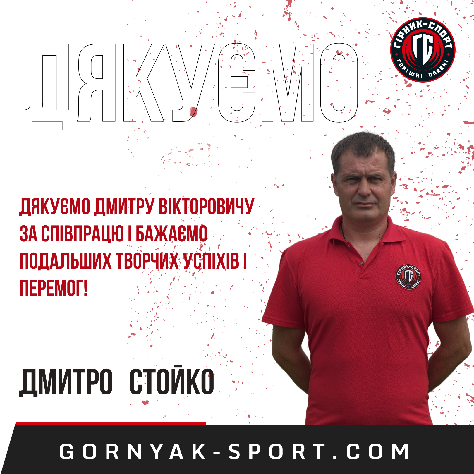 Футбольний клуб «Гірник-Спорт» дякує за співпрацю тренеру воротарів Дмитру Стойку, який протягом трьох років працював із голкіперами команди та зробив вагомий внесок у розвиток клубу. З нового сезону цей фахівець готуватиме воротарів ФК «Ворскла».